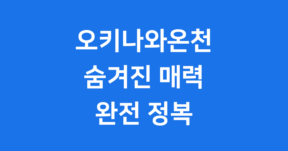 오키나와온천 2025년 숨겨진 매력 완전 정복 가이드