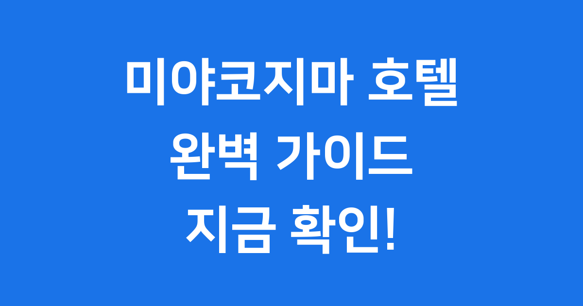 안녕하세요! 에메랄드빛 바다와 아름다운 자연이 가득한 미야코지마로 떠날 준비를 하고 계신가요? 😊 오늘은 여러분의 여행을 더욱 특별하게 만들어 줄 미야코지마 호텔에 대한 모든 것을 알려드릴게요.